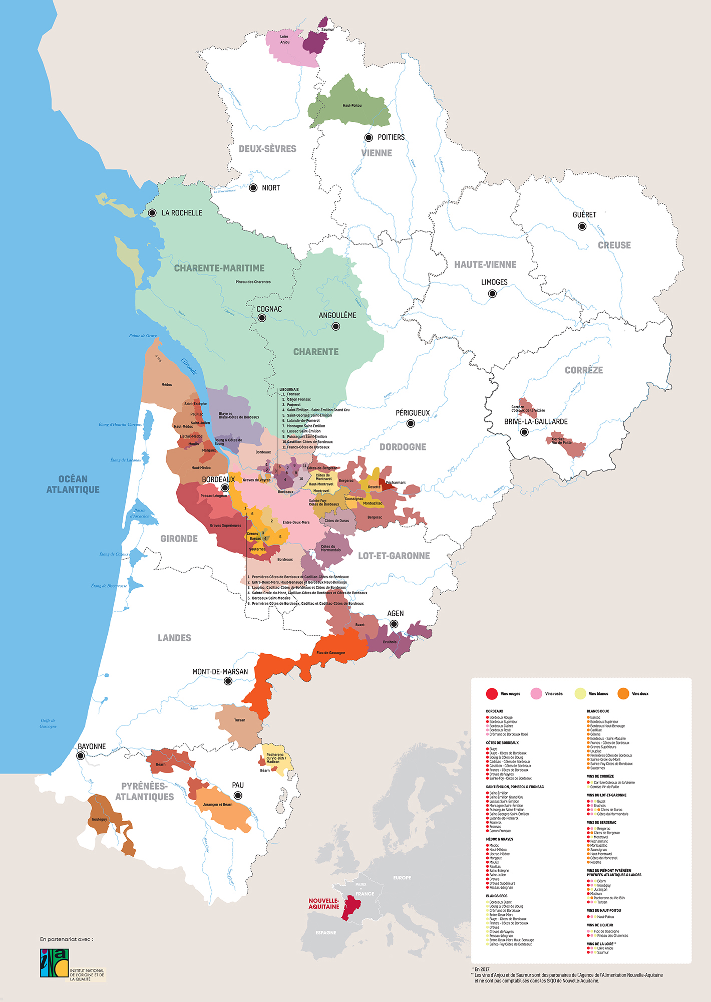 L’INAO, en partenariat avec la Chambre régionale d’agriculture Nouvelle-Aquitaine et la DRAAF Nouvelle-Aquitaine, a publié un mémento sur les 300 Signes Officiels de la Qualité et de l’Origine en Nouvelle-Aquitaine (données statistiques et économiques basées sur l’année 2021).